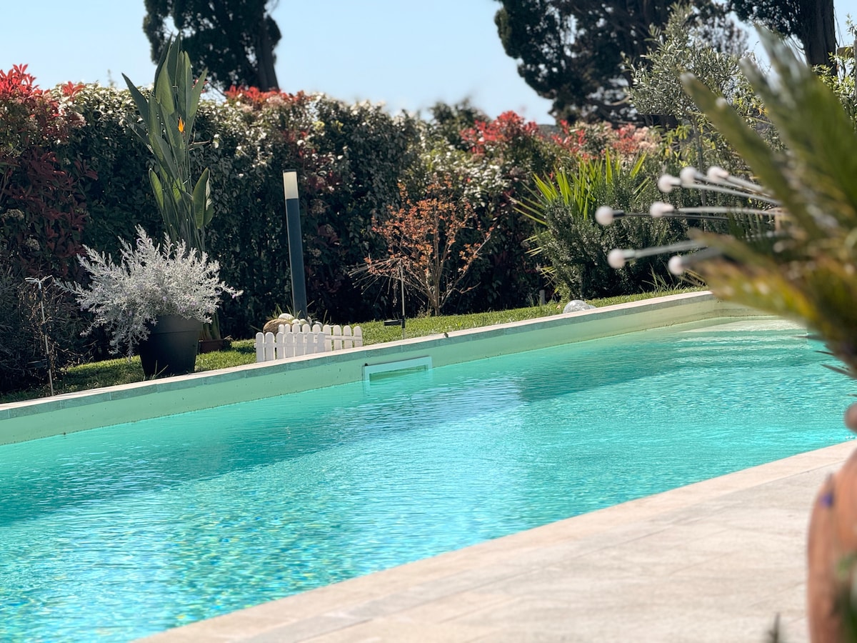 Apartamento de dos habitaciones con piscina privada, gran jardín y mar