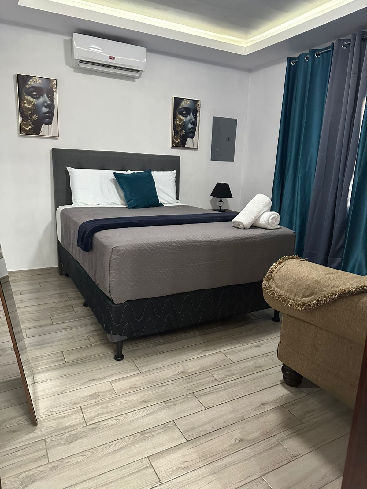 Esta hermosa y acogedora habitación te cautivará desde el primer instante! Inspirada en la naturaleza y diseñada para brindarte una estadía cómoda y relajante. Paisajes abiertos, coloridos y naturales. Cerca del aeropuerto, restaurantes, centros comerciales, farmacias y hospitales. Idealmente ubicada en la comunidad privada de Campisa, junto a la montaña, donde podrás hacer caminatas, observar la vida silvestre o simplemente disfrutar del impresionante paisaje. ¡Prepárate para una estadía 5☆!