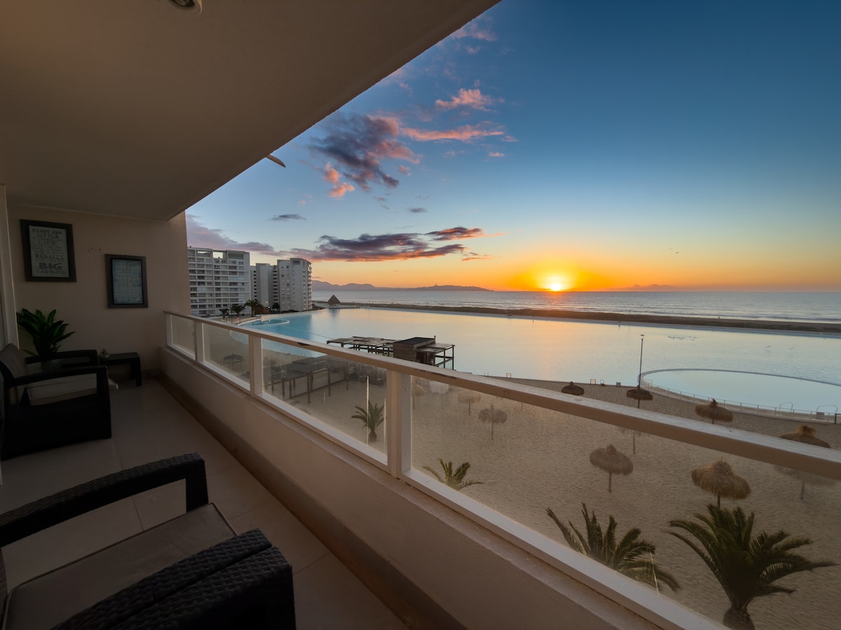 Apartamento frente a la playa en La Herradura. Despierta con el sonido del mar y disfruta de un amanecer increíble desde la terraza. El condominio cuenta con acceso directo a la arena e incluye estacionamiento privado gratuito, TV, Wi-Fi de alta velocidad y cocina completamente equipada. Podrás disfrutar de amplios espacios comunes perfectos para toda la familia: quincho, saunas, piscinas, jacuzzi y áreas de juegos infantiles. “Te esperamos para que vivas una experiencia única junto al mar”