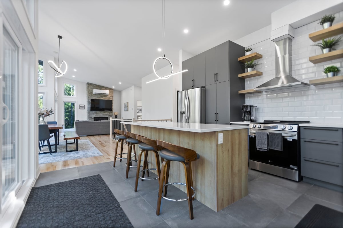 El Chalet Le Fidèle, situado en Lanaudière, una nueva construcción moderna, directamente al borde del agua, es un lugar para reducir la velocidad, desconectar y pasar tiempo de calidad con la familia y los amigos, en un lugar tranquilo e inspirador. Esta lujosa casa de inspiración escandinava, fue diseñada preservando la hermosa vista del lago que te deslumbrará a tu llegada. ¡El chalet está equipado con todo lo necesario para pasar una estancia inolvidable!