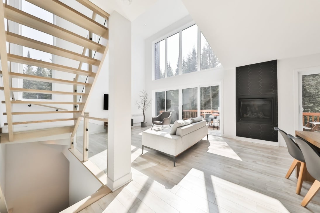 Chalet escandinavo sauna lago chimenea Laurentides