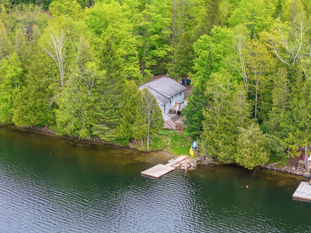 Escápate a nuestra casa mejor valorada, frente al lago, un refugio mejorado de 3 dormitorios + barracón separado, 2 baños, para todas las estaciones, a solo 1 hora y 20 minutos de Parliament Hill. Con impresionantes vistas, un porche con mosquitero, un increíble muelle de verano, una relajante chimenea al aire libre, kayaks, raquetas de nieve, una acogedora chimenea y espacio para 8 personas, esta no es una escapada cualquiera. Totalmente equipado, muy bien mantenido y perfecto durante todo el año. Una escapada tranquila a la naturaleza con todas las comodidades del hogar, ¡y algo más!