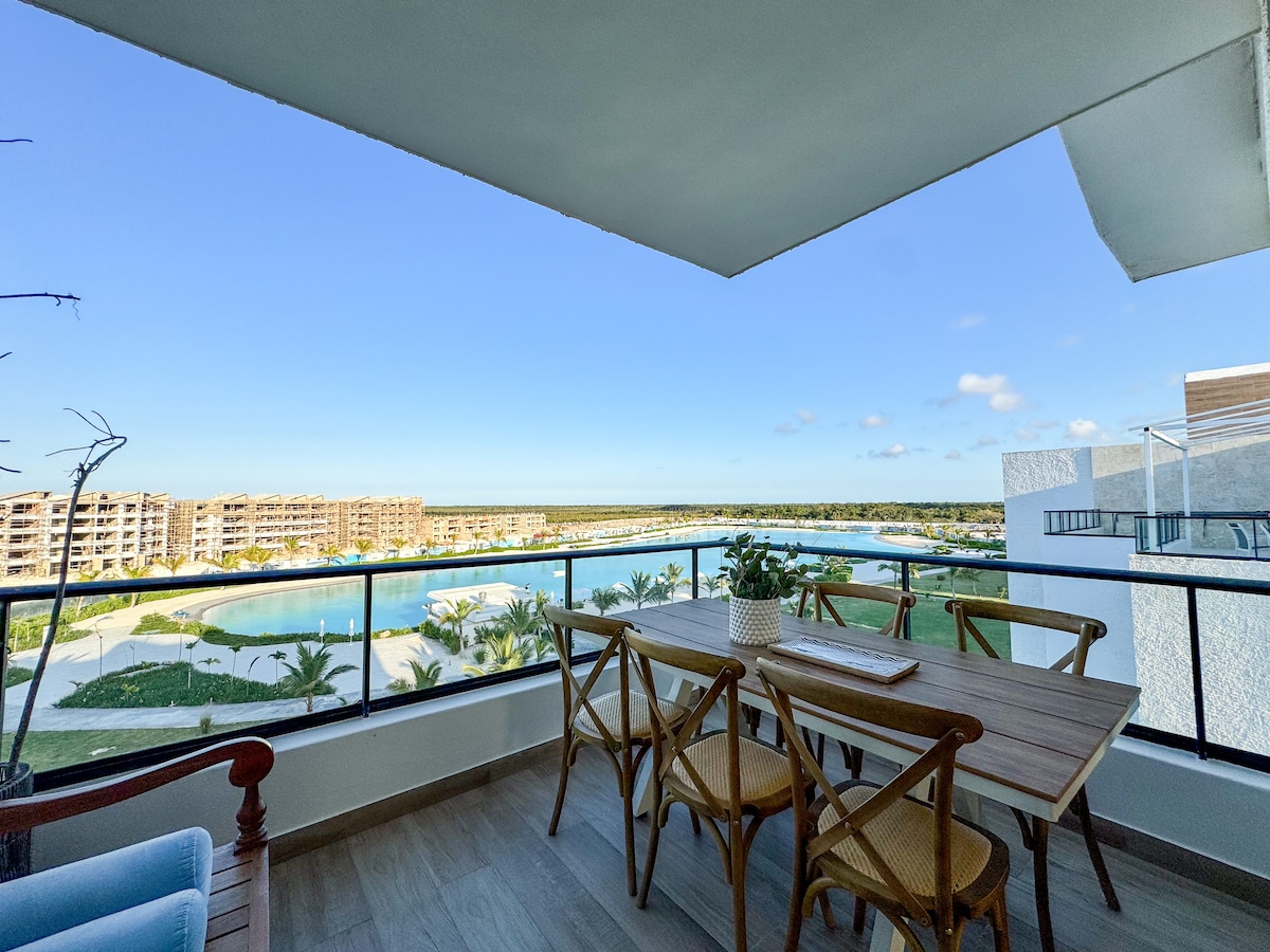 Vive Punta Cana desde un elegante apartamento con vista a la mayor laguna cristalina del Caribe, con playa artificial y arena blanca. Ideal para familias o amigos, totalmente amueblado y equipado para tu comodidad. A 2 min de Coco Bongo, Hard Rock y zonas de ocio. Incluye sofá cama y colchón adicional. Seguridad 24/7, excelente ubicación y fácil acceso desde el aeropuerto. Disfruta confort, estilo y una experiencia inolvidable.