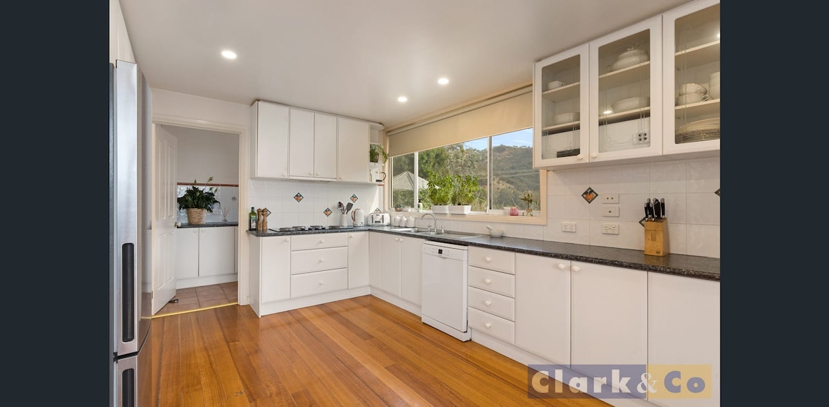 Esta hermosa vivienda elegante se encuentra en 16 acres con vistas a la Catedral que te dejarán sin aliento. Vistas al lago y a la montaña. Estancias de élite: ofrece a los huéspedes un lugar lujoso al que volver después de probar las delicias y emociones de Marysville, Yarra Valley, el lago Eildon, los campos de nieve de Lake Mountain y la región de Murrindindi. A 95 kilómetros de Melbourne en la autopista de Maroondah. A poco más de 10 minutos de Marysville o a 50 minutos de Euroa y Mansfield.