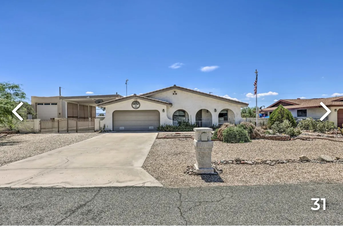 Hideaway de Havasu es un destino de alojamiento de 5 estrellas. Piscina cristalina mantenida a una temperatura agradable, excepto en invierno, de diciembre a marzo. Oasis en el patio trasero, con características privadas y agradables. En el interior se encuentran todas las comodidades y servicios de casa, y también damos la bienvenida a los Bebés Fur. Las noches en el patio delantero mostrarán hermosas puestas de sol en lo mejor de Havasu. Ofrecemos una estación de carga para vehículos eléctricos (el adaptador para un Tesla será responsabilidad de los huéspedes).