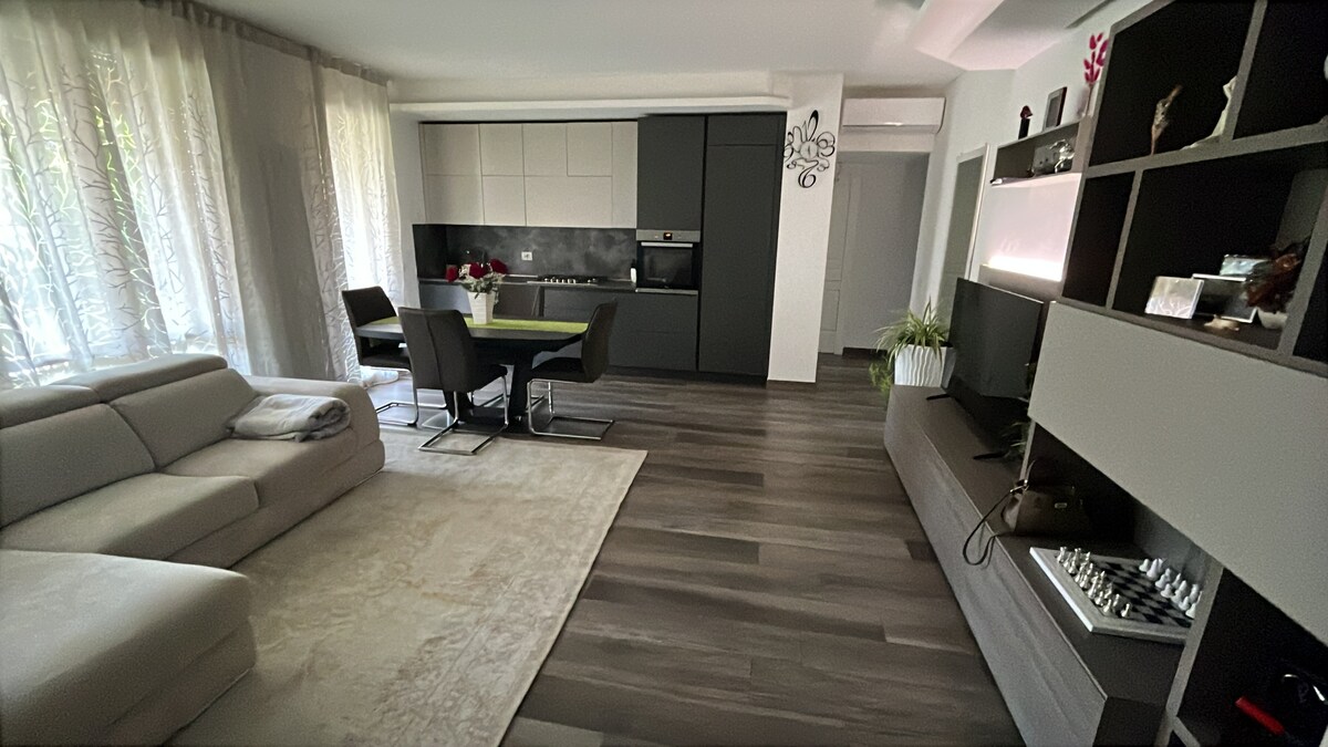 El apartamento tiene más de 60 m² e incluye un (1) dormitorio con una cama doble, una sala de estar/comedor con un sofá cama doble y un baño moderno. El amplio espacio y el diseño sencillo lo hacen perfecto para familias pequeñas o grupos de hasta 4 personas. Los huéspedes también tienen la oportunidad de hacer comidas maravillosas en la cocina totalmente equipada y disfrutarlas en la pequeña mesa de comedor en la sala de estar.