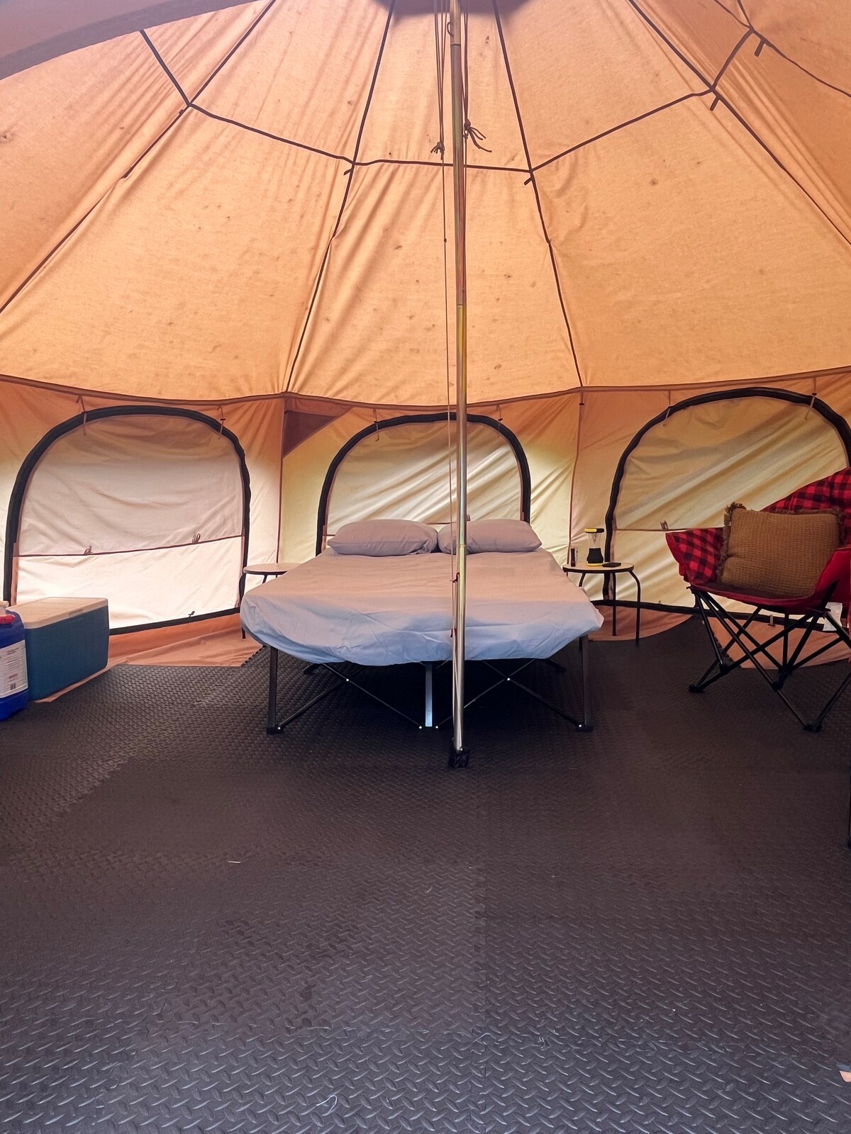 ¡Acampada de lujo! Tienda de campaña de 16 pies superprivada en 75 acres.