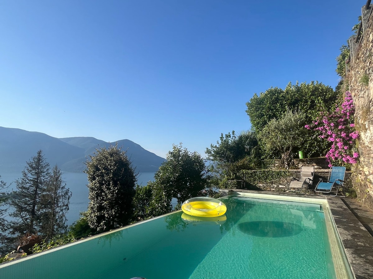 Valle Verzasca | Retiro con vistas al lago | Piscina y bosque