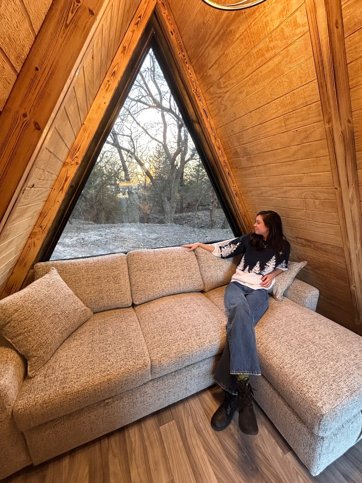Escápate a nuestra acogedora cabaña A-Frame, un refugio tranquilo y boscoso perfecto para tu próxima escapada. Diseñamos la cabaña para que te relajes fácilmente, desde las mecedoras en la cubierta hasta la fogata lista para las charlas nocturnas. La cocina está totalmente equipada y la parrilla está lista para usar. ¡Te encantará la cómoda cama tamaño king y la oportunidad de ver búhos desde el segundo dormitorio! A una hora y media en coche de Dallas y a minutos del lago Texoma, Highport Marina y Tanglewood Resort, es el lugar perfecto para relajarse y recargar energías.