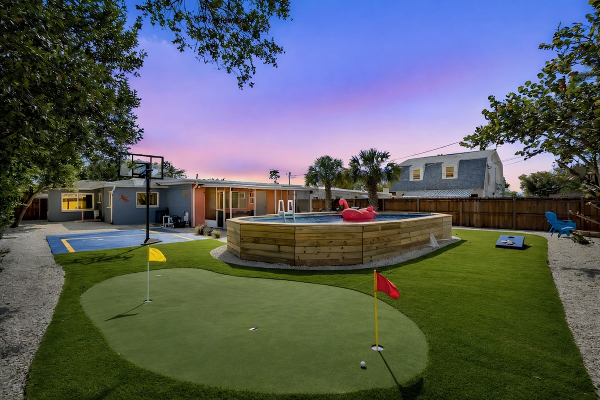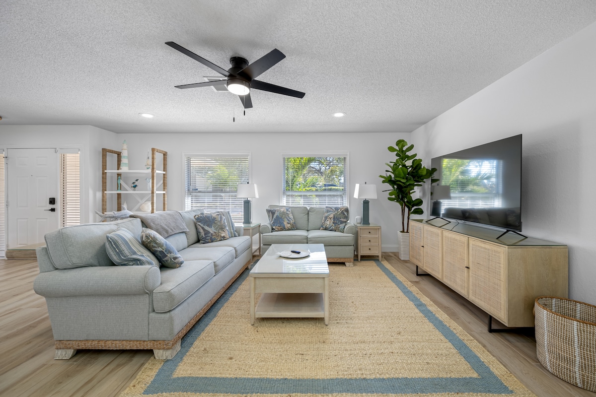 Descubre este glamoroso alojamiento de 3 dormitorios y 2 baños con capacidad para 12 huéspedes. Hermosa piscina de agua salada, cabaña tipo resort completa con TV y refrigerador de bebidas, barra tiki/asientos de bar y comedor al aire libre. El bungalow de invitados con su tocador es también un verdadero punto destacado. A solo 6 minutos de impresionantes playas y a 4 minutos del centro de la ciudad Seminole, esta ubicación es inmejorable. Cada habitación cuenta con una televisión inteligente y está impecablemente decorada y limpiada profesionalmente.