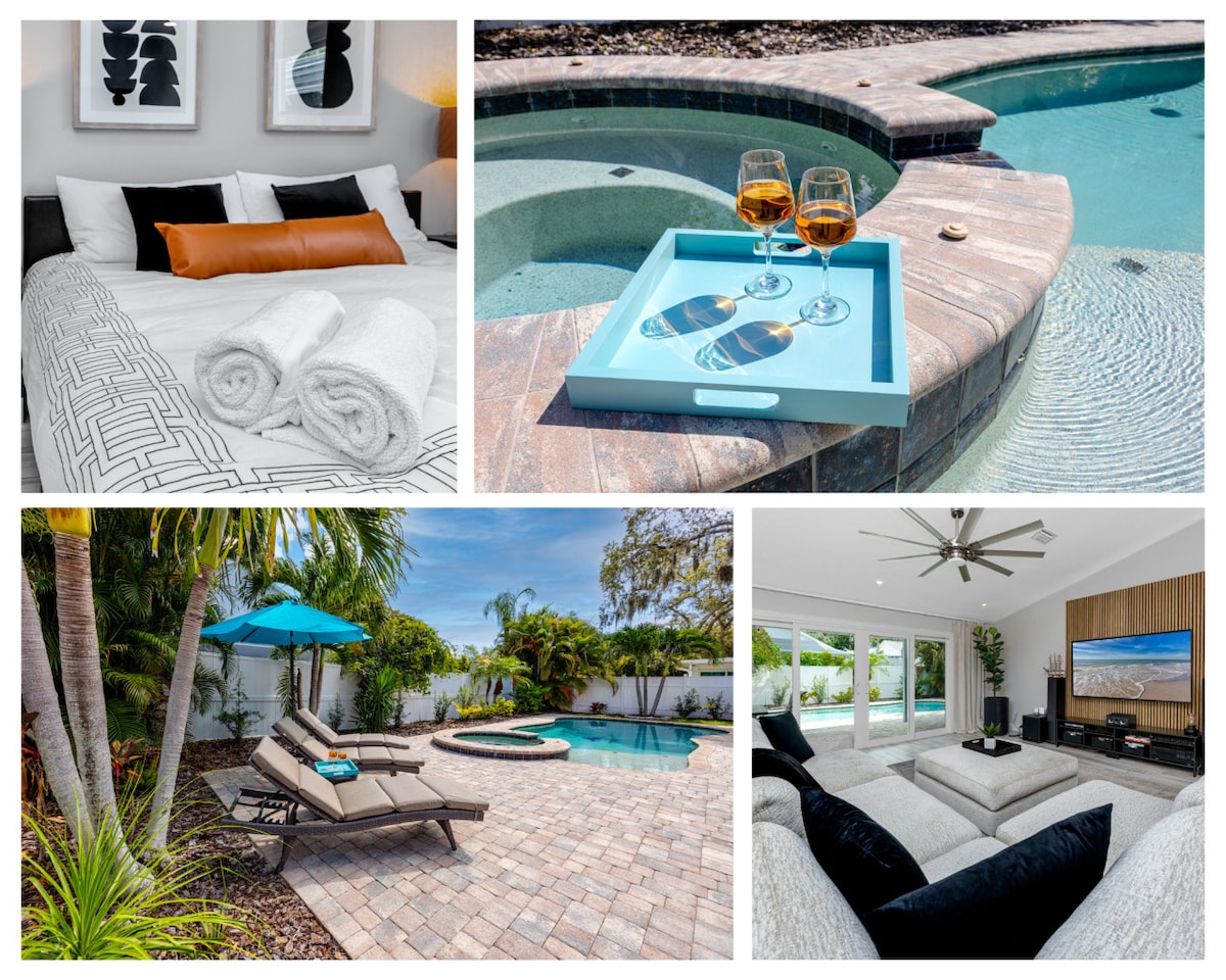Piscina climatizada* a 8,5 millas de Honeymoon Island. 4 dormitorios