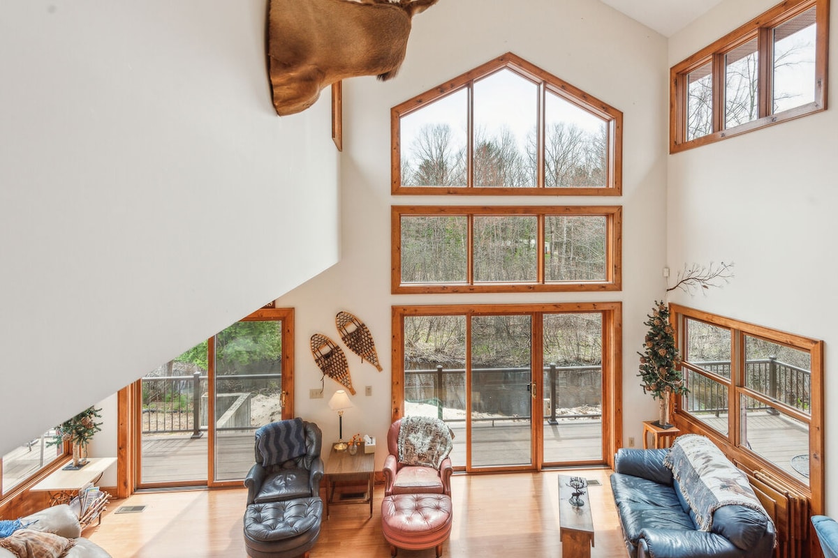 Esta cabaña alpina con estructura en A en el bosque cuenta con 3 dormitorios y comodidades para una estancia de cuatro estaciones. La cocina tiene un concepto abierto a una amplia sala de estar con chimenea natural. Dos baños completos, lavandería en el primer piso, terraza al aire libre y chimenea. Ve directamente a las pistas de motos de nieve, esquía a 25-30 minutos en Caberfae & Crystal Mountain, ciclismo de montaña, ciclismo de carretera a Traverse City. Senderismo, piragüismo/kayak y ATV/UTV. La temporada de caza está en marcha, consulta los sitios web de Michigan para conocer las zonas circundantes autorizadas.