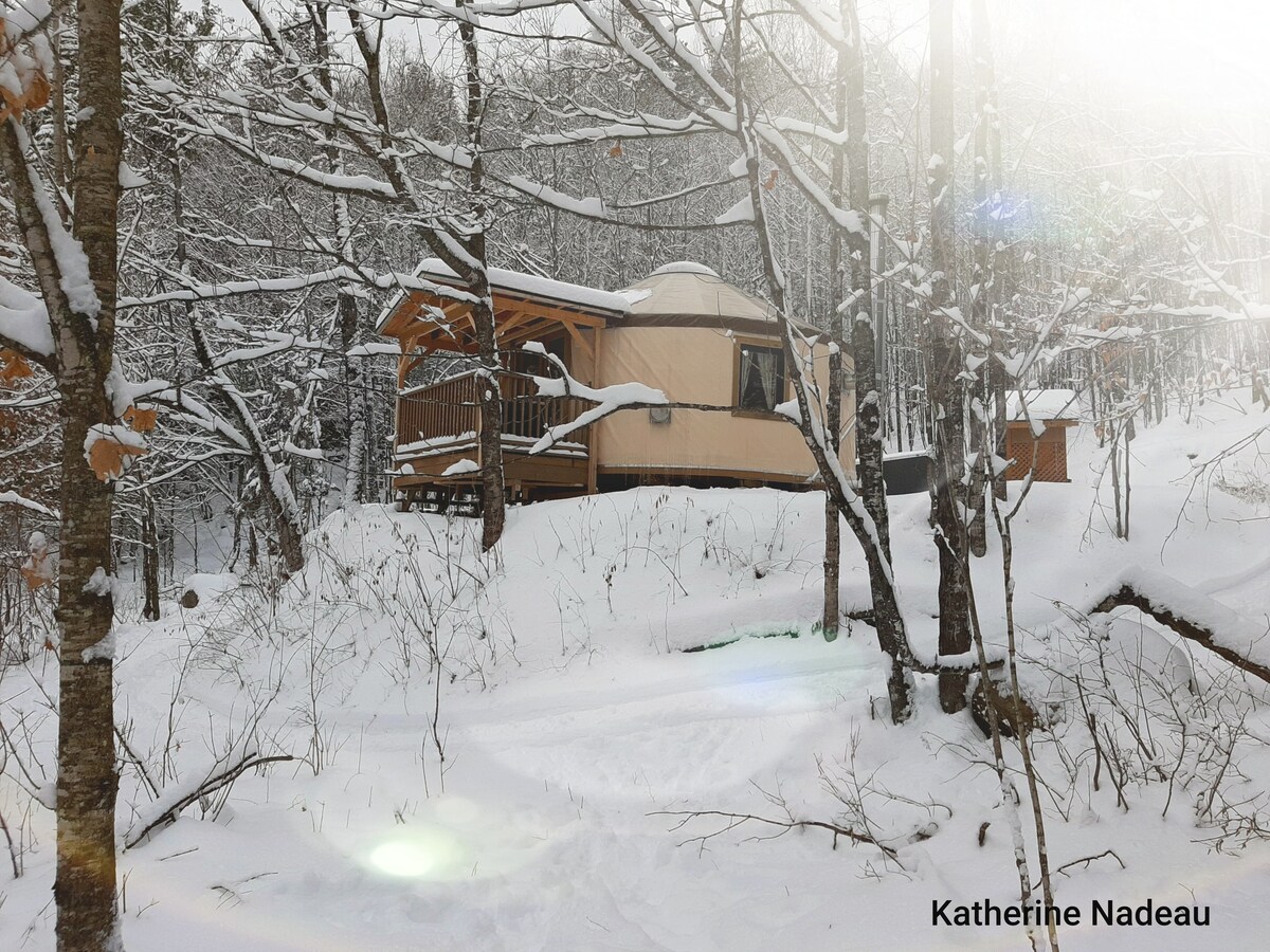 Nuestra yurta Espace Campagne es una experiencia invernal única. Se alquila solo entre diciembre y abril. ¡En la nieve! Disfrutará de los senderos a pie o con raquetas de nieve, disfrutará de una cálida comida con una cocina bien equipada, ¡incluso con ollas de fondue! Y para terminar, ¿un cine en casa en nuestra pantalla gigante frente al fuego de la chimenea? El ambiente es una experiencia. Todo de madera. Rusticidad, baño elegante pero seco. Es hermoso. Es zen. Está bien organizado. Todo ha sido pensado.