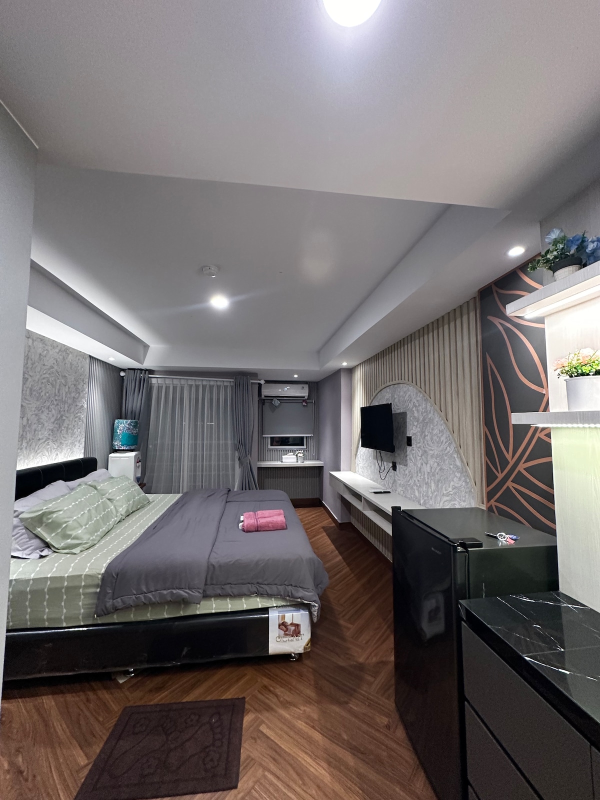 Un apartamento tipo estudio tranquilo y céntrico que ofrece un registro de entrada autónomo sin problemas. Las comodidades incluyen: • Cocina pequeña totalmente equipada • Televisión • Baño con calentador de agua • Wifi de alta velocidad. • Plancha • Toallas frescas • Artículos de tocador de cortesía (champú, jabón, cepillo de dientes y pasta de dientes) Los huéspedes pueden disfrutar de acceso gratuito a la piscina y al gimnasio. Se requiere un depósito reembolsable de 150.000 IDR en el momento del registro y se devolverá en su totalidad en el momento de la salida, sujeto a que no haya daños.