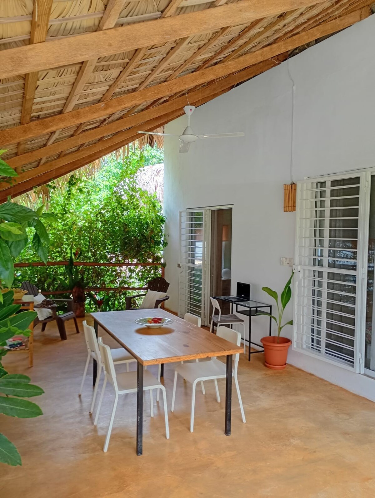 Pequeña casa de Juan y Lolo en jardín tropical