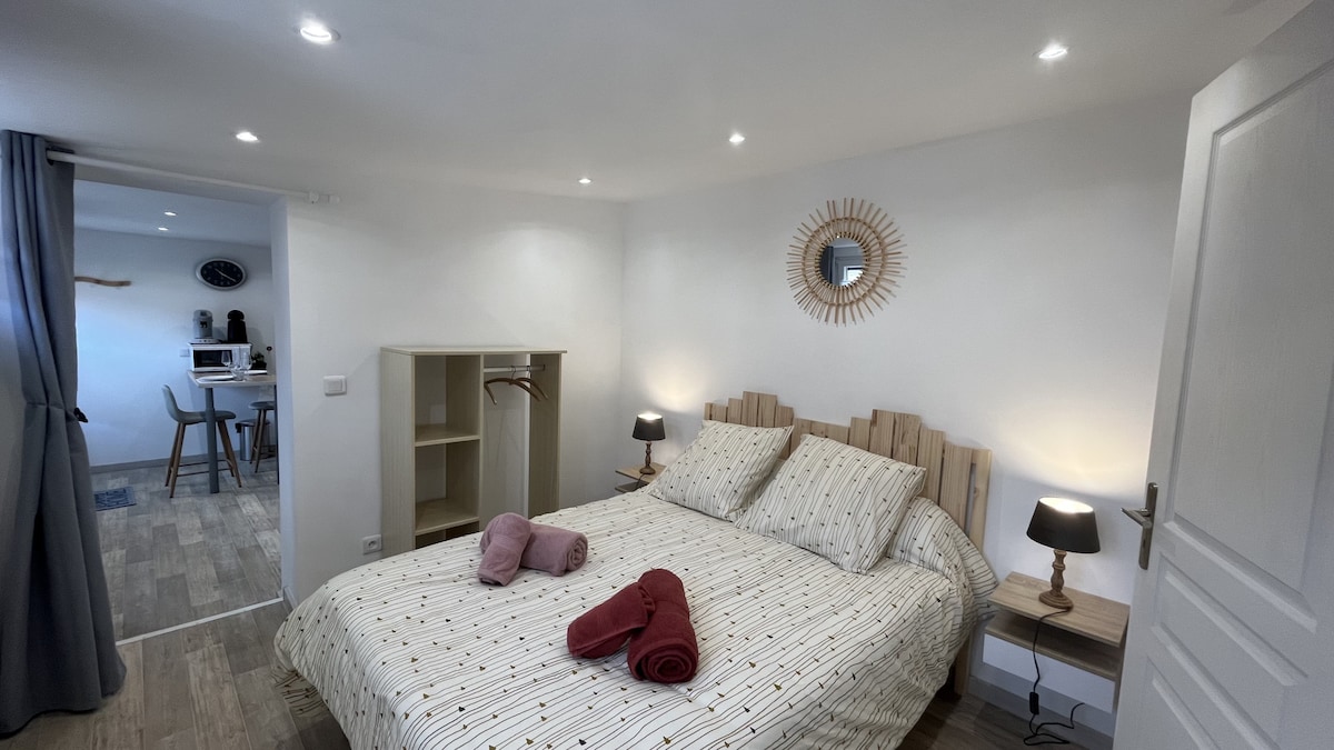 Bonito apartamento luminoso de 40m2 , situado en un pequeño complejo en el 1er, reformado (06/20)estilo haussmaniano con decoración moderna. Hermosa sala de estar, cocina equipada.Alojamiento para 2/4 personas (1 dormitorio con cama de 160 x 200 + cama paraguas y convertible para 2 personas en la sala de estar).Idealmente situado, a menos de 100 metros de la playa orientada al sur y a 5/10 minutos a pie del centro de la ciudad.Al llegar de forma independiente posible. La ropa de cama está incluida. La ropa de baño queda a su cargo. clasificado ⭐️⭐️