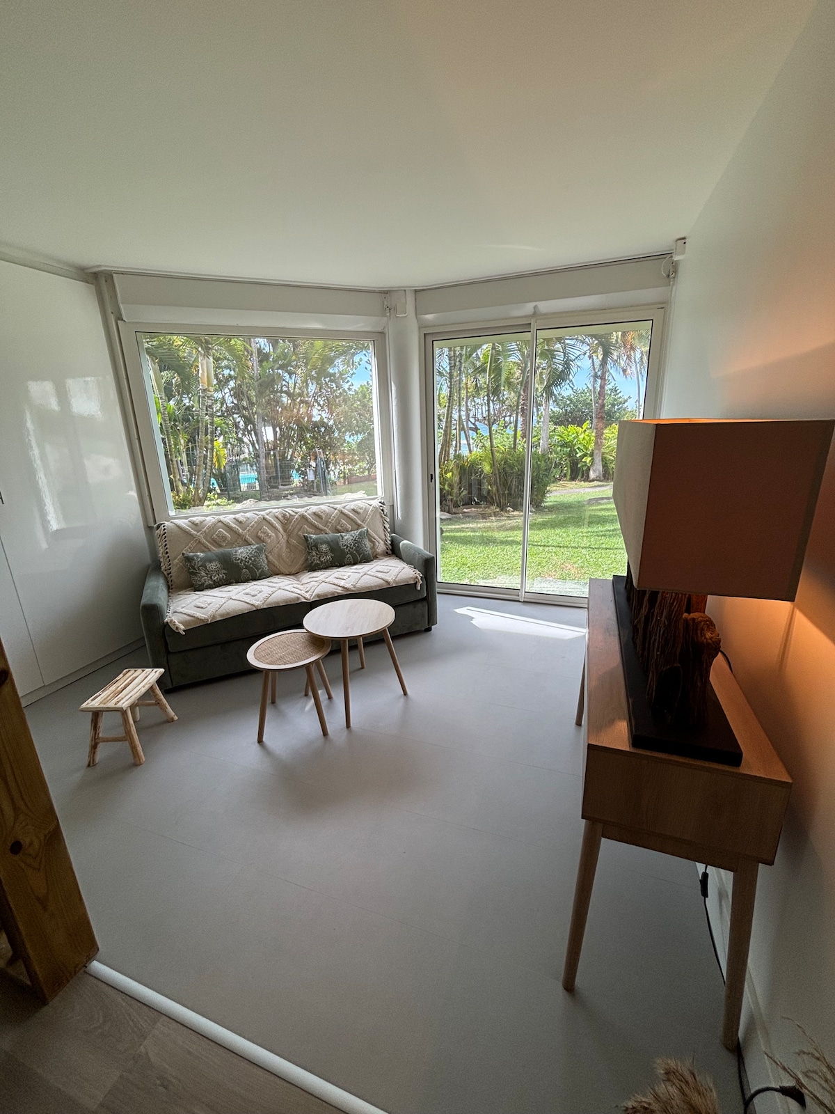 Inmediatamente le encantarán estas impresionantes vistas del islote Gosier. El apartamento está reformado, con 1 habitación con aire acondicionado con vistas al mar, una gran sala de estar y cocina equipada para su mayor comodidad. ¡La terraza abierta le permitirá disfrutar de sus comidas con vistas al mar! La residencia es muy tranquila y está idealmente situada, podrá relajarse junto a la piscina con total tranquilidad. El alojamiento está equipado con una cisterna, en caso de un posible corte de agua.