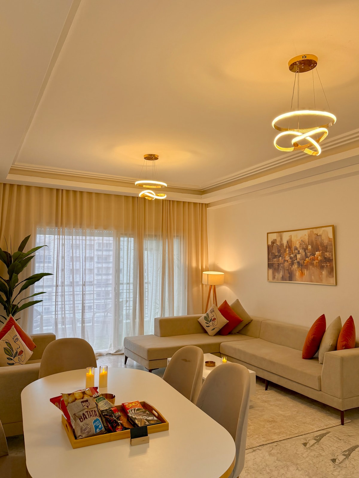 Superbe appartement style moderne et épuré parfaitement équipé. Smart TV, Climatisation et chauffage centrale disponible. Place de parking sécurisée en sous sol. Proche de toutes les commodités, vous serez à moins de 10min en voitures des principaux lieux touristiques de de Tunis: Carthage, Sidi Bou Saïd, Gammarth. Quartier vivant et très animée au pied de la résidence. Concubinage, fête et musique strictement interdit. 2 personnes maximum dans l'appartement. Check-in entre 14h et 19h maximum