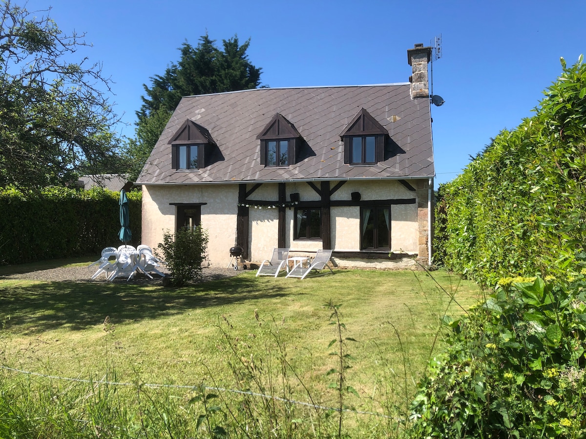 Casa de campo tranquila para una estancia, en pareja, en familia o con amigos hasta 7 personas más una cuna. Un lugar ideal para pasear y visitar los alrededores. Estamos a medio camino del Mont St Michel y de las playas del desembarco. Se proponen numerosas actividades en el lugar. Tómese un momento de descanso en una decoración de estilo Western completamente renovada. En contacto directo con animales, caballos, cabras, gallinas y perros.