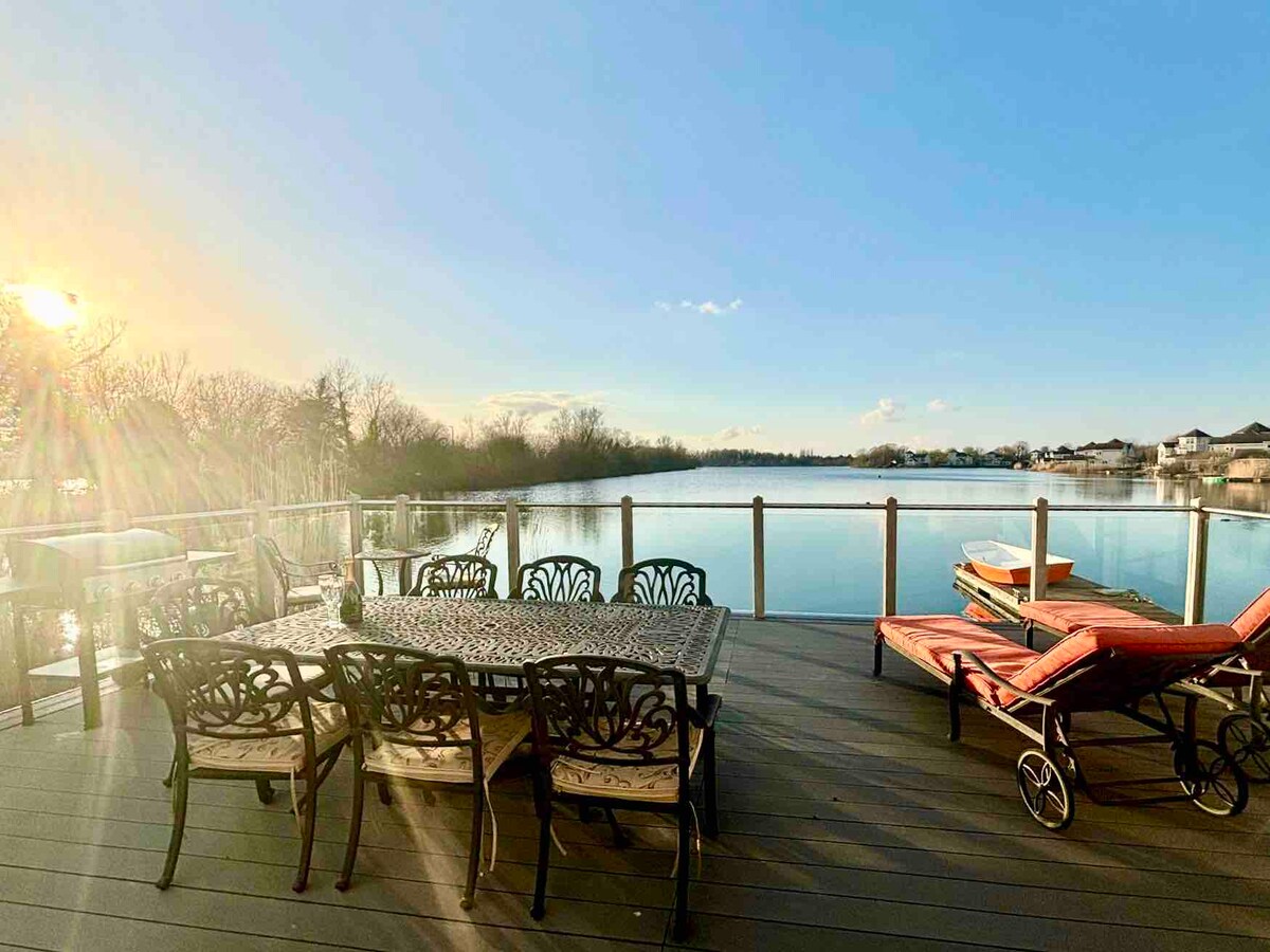 Tucked in a gated community in the heart of the Cotswolds, our spacious New England home opens directly onto the exclusive Landings lake, with its own pontoon and 3 kayaks giving access to its calm waters. Imagine waking to your own stunning lakefront and wildfowl views, relishing BBQs on the patio, then watching the sunset on your own private deck. Our two story house sleeps 10, complete with plush furnishings, a smart HDTV, superfast broadband and board games for all around family fun!