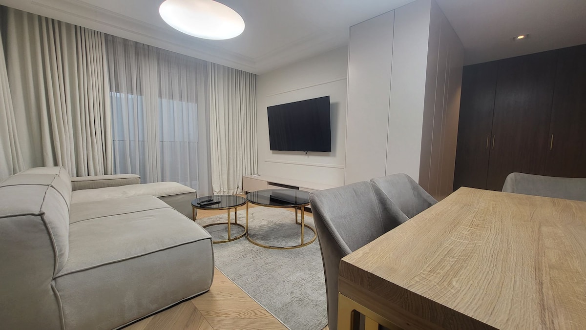 Witaj w naszym nowym, spójnie zaprojektowanym apartamencie, stworzonym z myślą o najwyższym komforcie i relaksie. Ten stylowy obiekt wyróżnia się ciepłym, nastrojowym oświetleniem oraz dbałością o każdy detal, co widać w sypialni i eleganckim salonie z wygodną sofą i szklanym stołem, idealnym do pracy lub kolacji. Gotowy na rezerwację? Sprawdź dostępność i zaplanuj swój komfortowy pobyt.