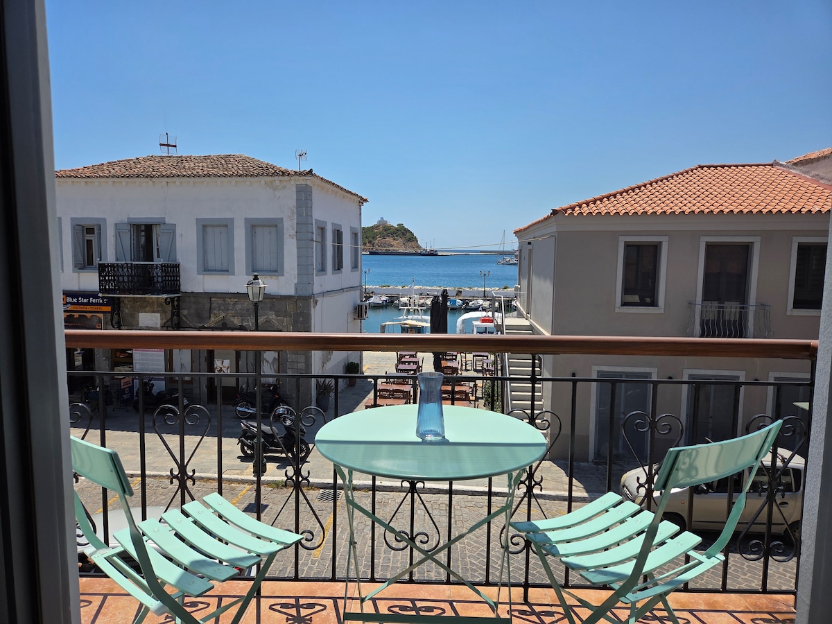 Simplicidad, ejercicio, relajación. Te ofrecemos un departamento urbano, justo debajo del castillo, en el corazón del casco antiguo de Myrina. ¡El apartamento forma parte de una casa de piedra de los años 50 en el centro histórico de la ciudad y ha sido renovado en el verano de 2019! La ruta del mercado con cafeterías, tiendas de arte popular y la playa de arena Romeikos Gialos, está a dos minutos a pie. El puerto antiguo y el paseo marítimo están a cinco minutos a pie. ¡Ubicación privilegiada para disfrutar del ambiente del casco antiguo!