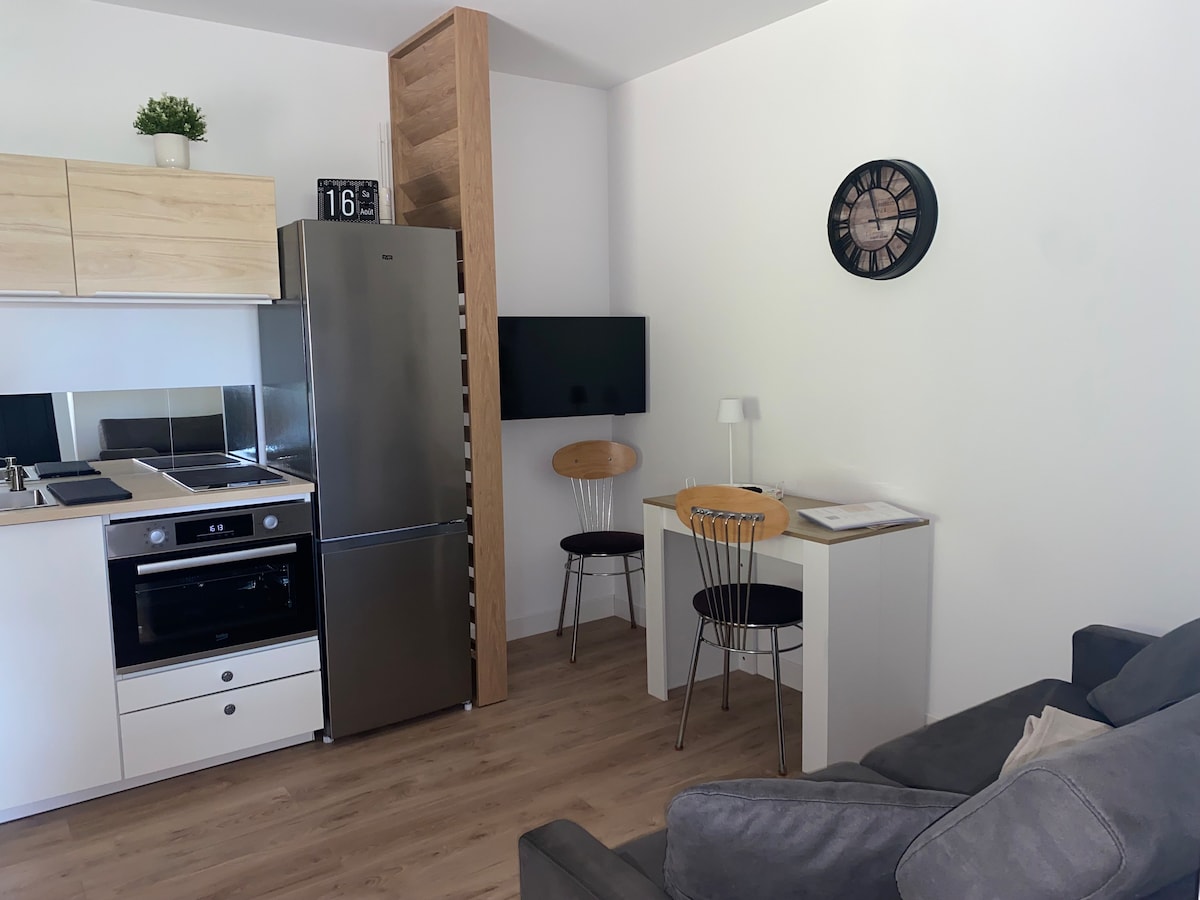 Buenos días Tengo el placer de ofrecerle este estudio amueblado 4**** situado en el corazón de un jardín arbolado y vallado en el centro de la ciudad: - planta baja - acceso independiente - totalmente alicatado para una protección antiácaros y una higiene máximas - climatizado - tranquilo - Parking privado y cerrado - a 1300 m de las Termas - cuarto de baño con ducha italiana (ropa de cama incluida) - cama de 160 cm x 200 cm (cama hecha a la llegada) - cocina totalmente equipada (lavavajillas) - terraza privada Saludos muy cordiales André