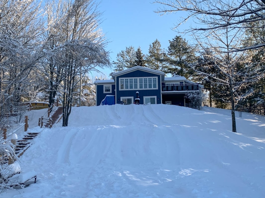 Impresionante chalet totalmente renovado situado en Val-des-Sources al final de un callejón sin salida con vistas al lago de los Tres Lagos, spa y piscina climatizada, chimenea, que ofrece tranquilidad y seguridad absolutas, y propicio para la relajación, así como para los placeres en familia o con amigos (kayaks para adultos/niños incluidos). 3 dormitorios con camas tamaño Queen + 1 sofá cama frente a la chimenea + 2 camas supletorias -- para 8 personas, máximo 6 adultos. ¡Amanecer en la cocina! Internet de alta velocidad: 120 mbps