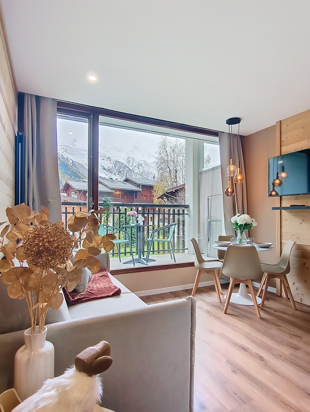 Apartamento reciente de 45 m³ en la planta baja en un chalet individual, que dispone de un gran dormitorio, una cocina equipada, cuarto de baño con bañera y WC, TV y wifi con vistas al valle, el pueblo y el macizo del Mont Blanc. La ubicación permite una salida «con los esquís puestos», parada de transporte al pueblo frente al chalet, o acceso en coche a 5 minutos. Cerca de restaurantes y comercios. Llegada autónoma mediante caja de llaves. ¡Ideal para una pareja o una familia pequeña!