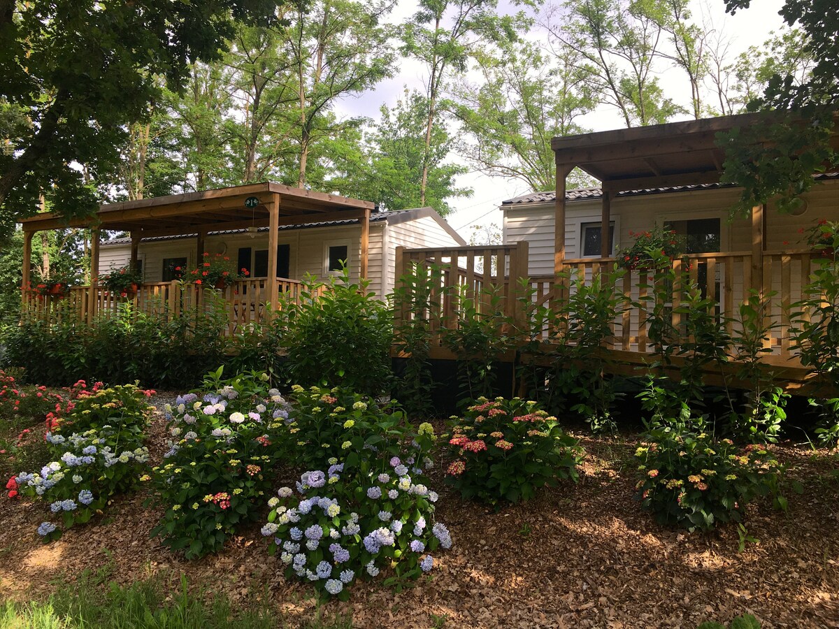 Casa móvil con aire acondicionado en muy buen estado de 35 m² ,sdb con cabina de ducha,inodoro, 1 hp con cama de 140, 1 hp con 2 camas de 80,zona de cocina con microondas, nespresso, hervidor,tostadora, estufa de gas (sin horno),nevera,congelador detector de humo,detector de CO2,extintor de incendios,aspiradora . terreno privado de 1600 m² Columpio terraza muebles de jardín,sombrilla,barbacoa Playa a 150 m ,restaurante,actividades náuticas ,cerca de todos los comercios accesibles a pie ,ruta de senderismo. No se admiten mascotas no fumar