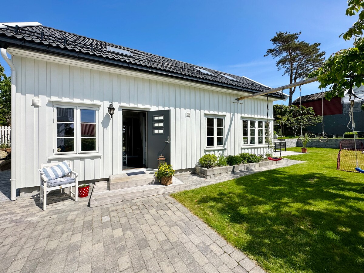 Southern Gem: ¡perfecto para tus vacaciones! ¡Te damos la bienvenida a un oasis recientemente renovado en Lillesand! Disfruta de una espaciosa terraza de 30 m² y un hermoso jardín de 600 m², perfecto para relajarse y disfrutar de momentos acogedores. A solo 2 minutos a pie de algunas de las playas más idílicas de Lillesand, lo que lo convierte en el lugar ideal para unas vacaciones inolvidables. Distancias: • Lillesand: aprox. 6 km • Zoológico de Kristiansand (Dyreparken): aprox. 22 km Esperamos que tu estancia sea increíble. ¡Te damos la bienvenida a Kilen 9! 😊