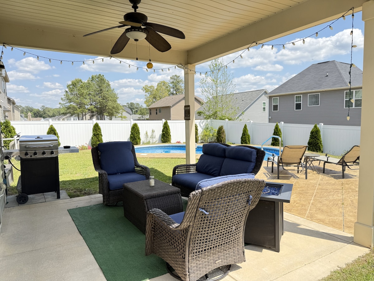 ¡Lo mejor de Fuquay! Cómodo, patio vallado, chimenea exterior