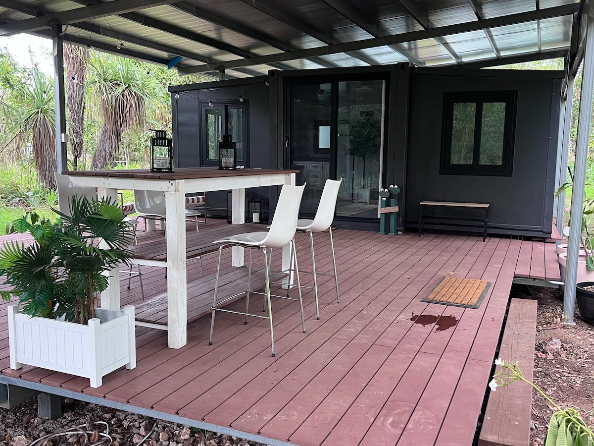 Relax in this private tiny home in Humpty Doo, set on a shared property with its own driveway, locked gate and undercover parking. The space includes a cosy double bedroom, a separate office, a fully equipped kitchen and a modern bathroom. Enjoy a spacious outdoor area surrounded by lush tropical gardens, offering peace and privacy. Close to local shops, pubs, markets and Top End attractions, it’s ideal for couples, singles or remote workers seeking comfort in a beautiful rural setting.