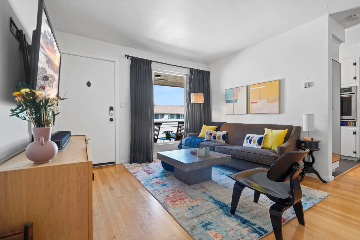 Bienvenido a The Daisy Suite, la joya histórica ubicada entre el mar y el distrito de las artes del centro de Long Beach. Este estudio bellamente renovado ofrece una planta abierta y vistas al puerto deportivo. Cada habitación ha sido cuidadosamente seleccionada para garantizar que tu estancia sea elegante, elevada y fiel al período de los años 20. El apartamento está a poca distancia a pie del Centro de Convenciones de Long Beach, Pine Avenue, The Pike y múltiples boutiques, restaurantes y bares.