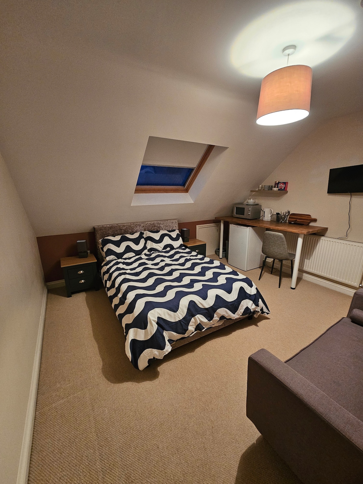 Stylish, newly refurbished apartment in Quedgeley, just a 10-minute drive from Gloucester’s historic docks. Shops, supermarkets, pubs and restaurants are all within walking distance. Sleeps up to 4 with one double bedroom and a double sofa bed. Features a brand-new kitchen and bathroom, 900Mb fibre broadband, dedicated desk with external monitor, superfast Wi-Fi, coffee machine, washing machine and parking. Ideal for business or leisure stays.