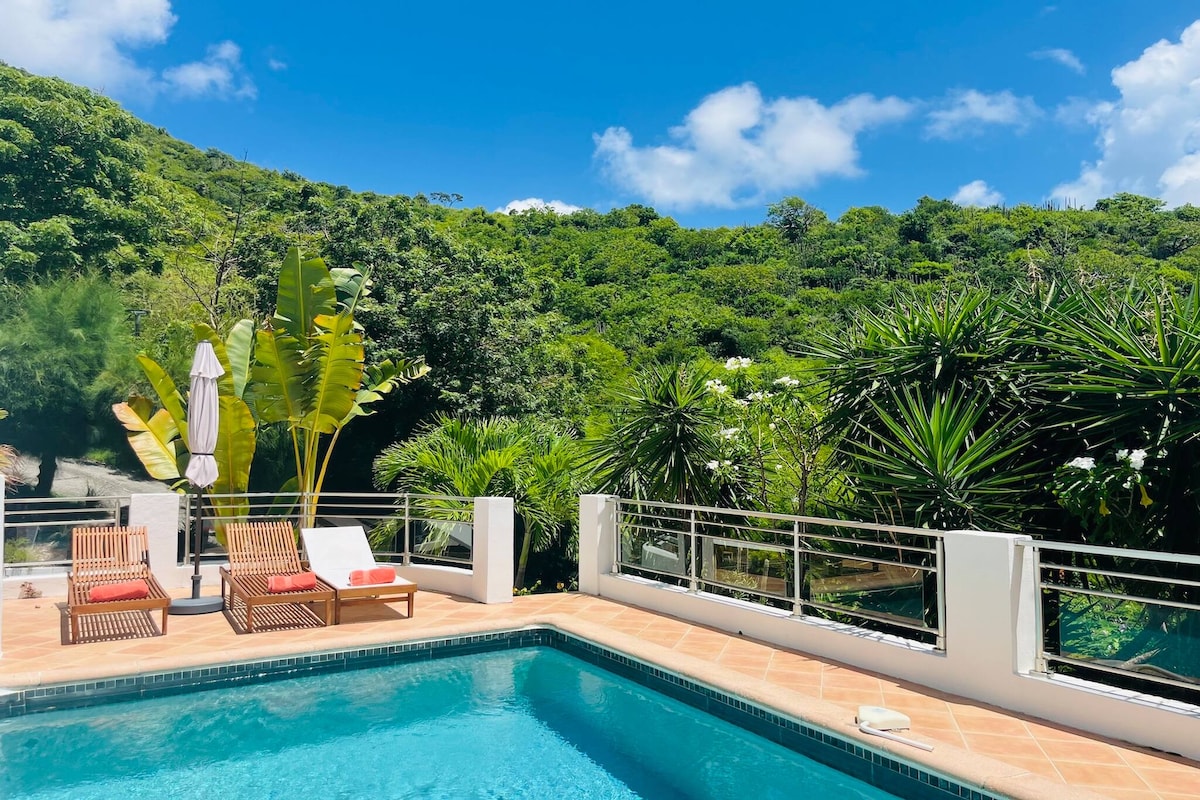 Escápate a la tranquilidad en nuestro remoto apartamento moderno de 2 dormitorios encaramado en lo alto de una colina para aquellos que desean serenidad en un refugio libre de desorden contemporáneo. Desde nuestra amplia terraza, sumérgete en los impresionantes amaneceres, puestas de sol y vistas inigualables del mar Caribe. Este espacio meticulosamente diseñado ofrece vistas panorámicas al mar sin obstáculos de St. Barts, Saba y Statia. Sumérgete en la belleza de la naturaleza mientras disfrutas de las comodidades modernas en este refugio aislado pero accesible.
