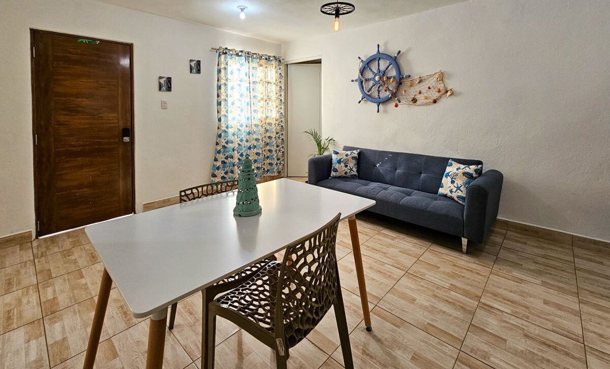 Relájate con toda la familia en este lugar tranquilo para hospedarte. ¡Aire acondicionado en todas las habitaciones! Agua caliente. 2 camas tamaño queen. A tu llegada, la seguridad te dará la bienvenida y te dirigirá a tu estancia tranquila. Solo dile el apartamento 202B DE alquiler.