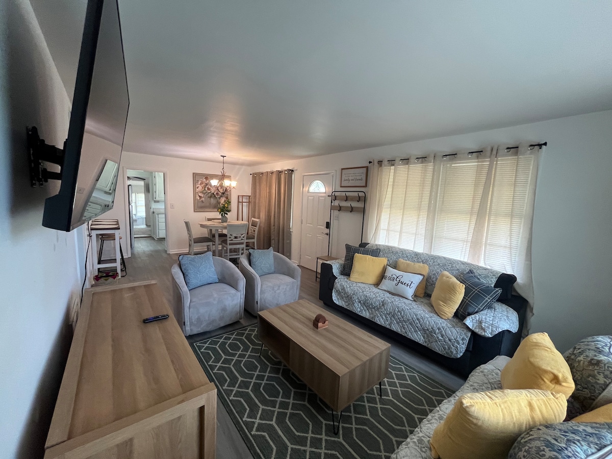 Welcome to your fun and stylish family retreat in a prime location! * Home comfortably sleeps up to 8 guests * King Suite with Pillow-Top mattress * 4 Smart TVs * Fully stocked kitchen for cooking family meals * Dining table for 6 perfect for gatherings * Fast Wi-Fi & dedicated workspace * Fenced Backyard w/grill for relaxing evenings & pets * NO STEP ENTRY Whether you're visiting family, attending a VSU event, or just passing through, this home offers a comfortable place to relax.