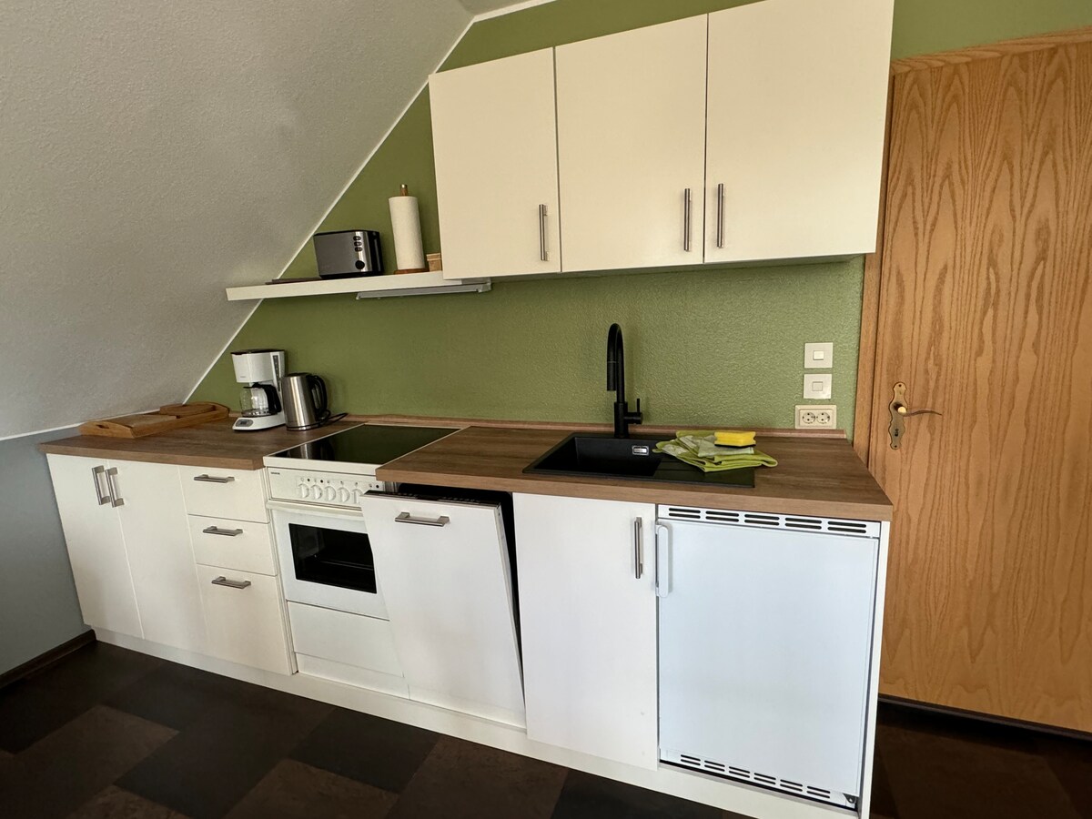 El apartamento de vacaciones se encuentra en una casa de nueva construcción de 2017 con acceso independiente al 1. piso. Es posible una estancia sin contacto con el registro de entrada a través de la caja de llaves. Sin embargo, nos complace dar la bienvenida a nuestros huéspedes nosotros mismos. El alojamiento es solo para 2 personas y no apto para niños. Se pueden acordar desviaciones de la duración mínima de la estancia establecida a través de una solicitud. El alojamiento no es accesible para personas con movilidad reducida.