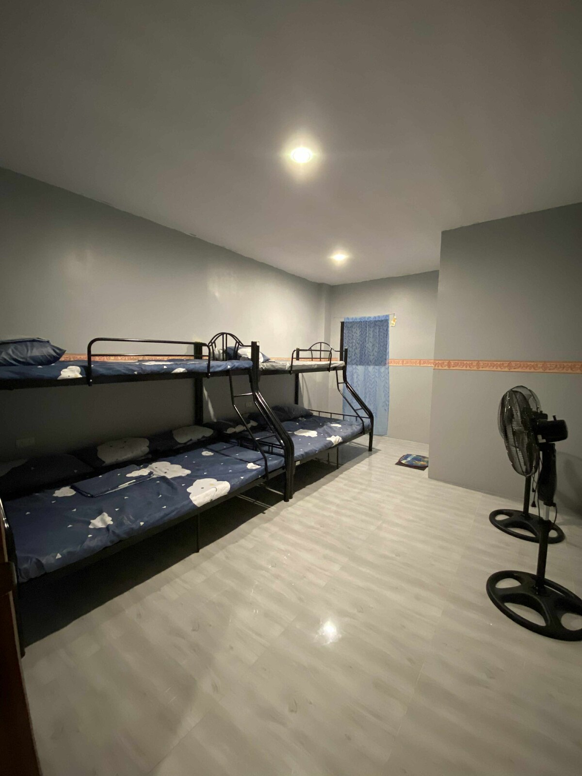 La sala familiar es un espacio cómodo para no fumadores de 37 metros cuadrados que ofrece tres camas dobles, ducha fría y caliente, y un balcón con vistas a la ciudad. La azotea, ubicada en el sexto piso, es un área designada para fumar disponible para fumadores y usuarios de vapeo. Hay conexión wifi en todas las plantas e incluye la azotea. Los huéspedes pueden disfrutar trabajando o relajándose en la azotea con vistas al monte. Banahaw. Para las personas que traen sus dispositivos, los enchufes eléctricos también están disponibles en la azotea.