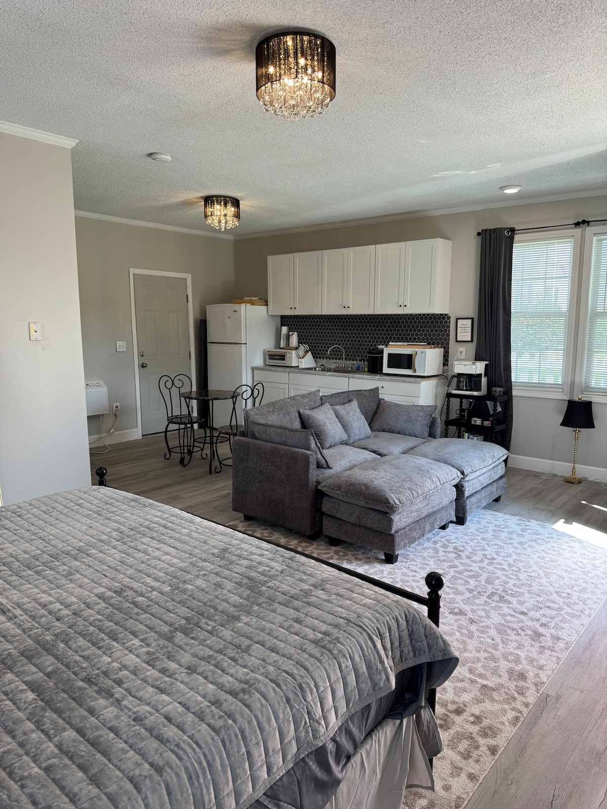 Aléjate del bullicio de la vida cotidiana y disfruta de un ritmo más lento en Fitzgerald. Experimenta la «vida rural» con pollos y patos de corral que deambulan por la propiedad. Pon a prueba tus habilidades de pesca y tal vez tengas una gran historia de pesca que contar cuando vuelvas a casa. Comparte historias y crea recuerdos mientras te sientas alrededor de la hoguera. Esta pequeña y pintoresca cabaña se encuentra a solo unos kilómetros del centro histórico, con calles de ladrillo, teatro restaurado, restaurantes locales y tiendas únicas; y a 30 minutos de la I-75.