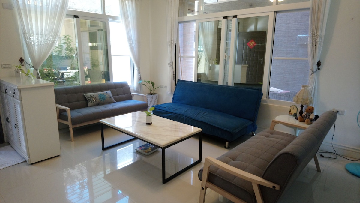 Dentro de Tulan Village, a diez minutos a pie del mar (agua, surf) y a cinco minutos a pie de la tienda de conveniencia familiar, la oficina de correos.En el segundo piso, hay una lavadora, baño, balcones delanteros y traseros, dos habitaciones para elegir, no compartidas con el anfitrión, en el primer piso, hay una mesa de comedor, cocina, pequeño patio trasero (el jefe cortará el pelo de los huéspedes en el primer piso durante el día).¡Solo un grupo a la vez!