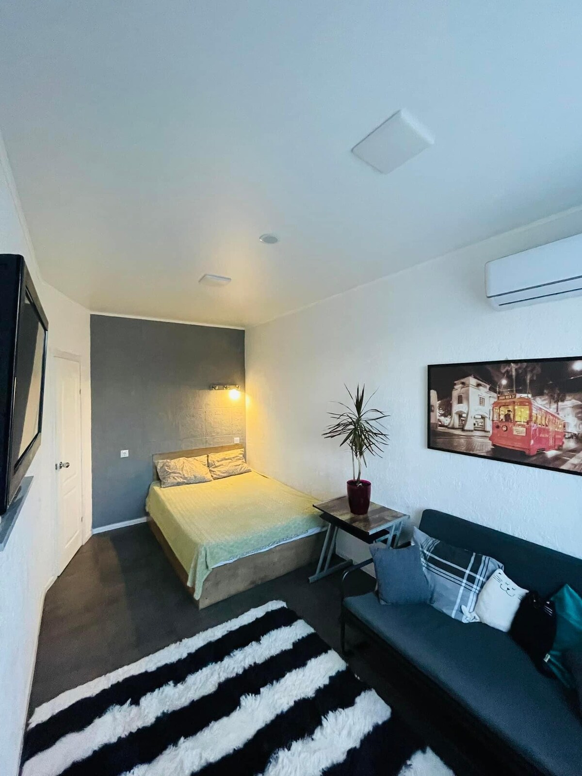 Para tus vacaciones, ofrecemos un cómodo departamento de 1 dormitorio en nuestra casa de huéspedes en Kurskaya. Estamos ubicados en el sector privado entre dos atracciones del mar Negro y el estuario de Kuyalnitsky. La playa de Malibú se encuentra a 15 minutos a pie, el descenso es suave, lo cual es conveniente para todos y especialmente para aquellos con niños en silla de ruedas. Al mar 900 m. Hay aparcamiento y un parque infantil. Cerca hay un centro comercial "Metro" y "Riviera", un minimercado de Marsella, donde puedes comprar frutas y verduras frescas.