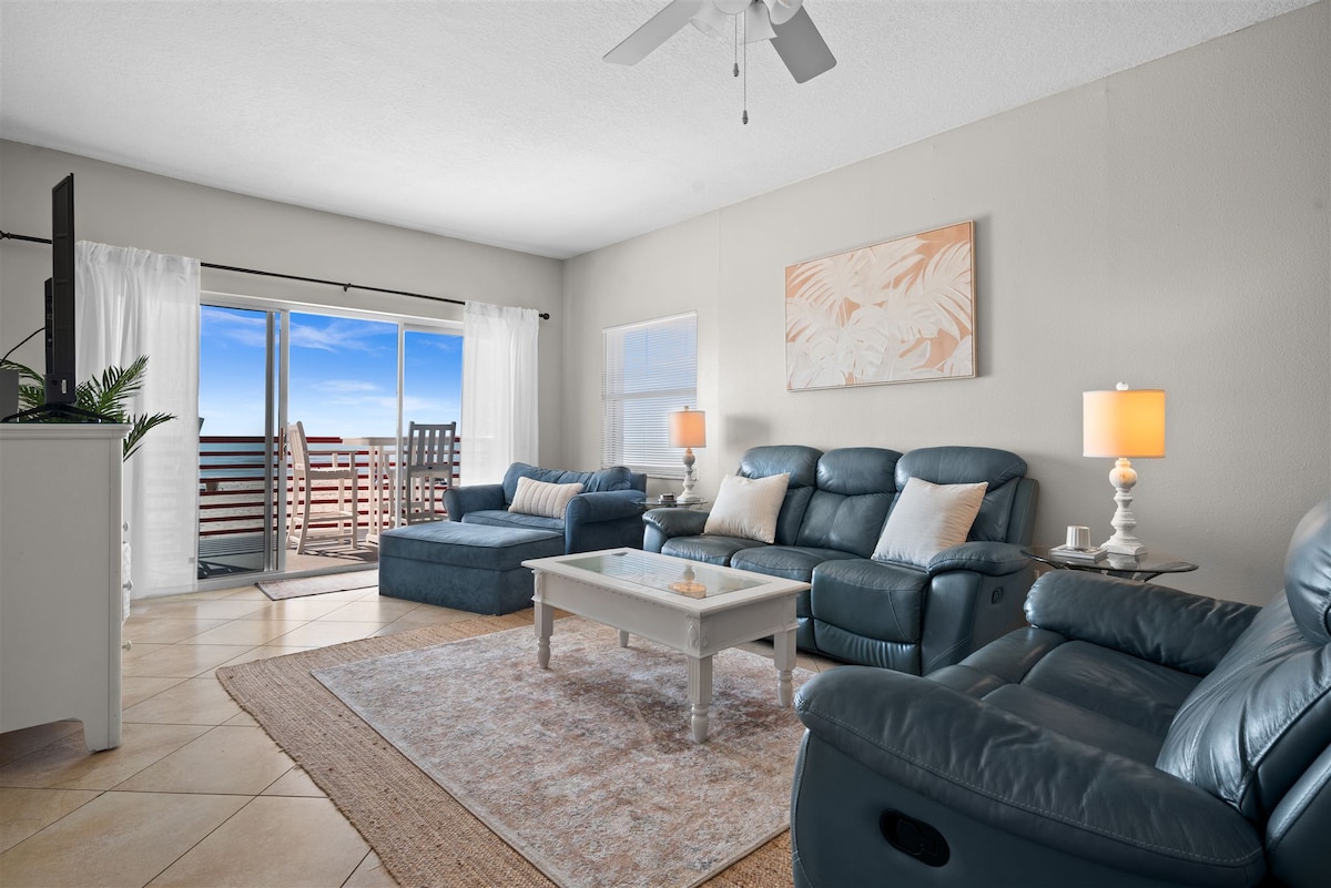 A solo unos pasos de la playa, este apartamento de playa recién reformado y perfectamente ubicado es tu escapada de lujo. El dormitorio grande, la elevada sala de estar y la moderna cocina abierta, así como el generoso balcón con vistas directas al golfo, harán que nunca quieras irte. Este apartamento está mejor equipado que el alquiler vacacional promedio y viene con su espectáculo privado diario al atardecer. Sigue leyendo para obtener más información...