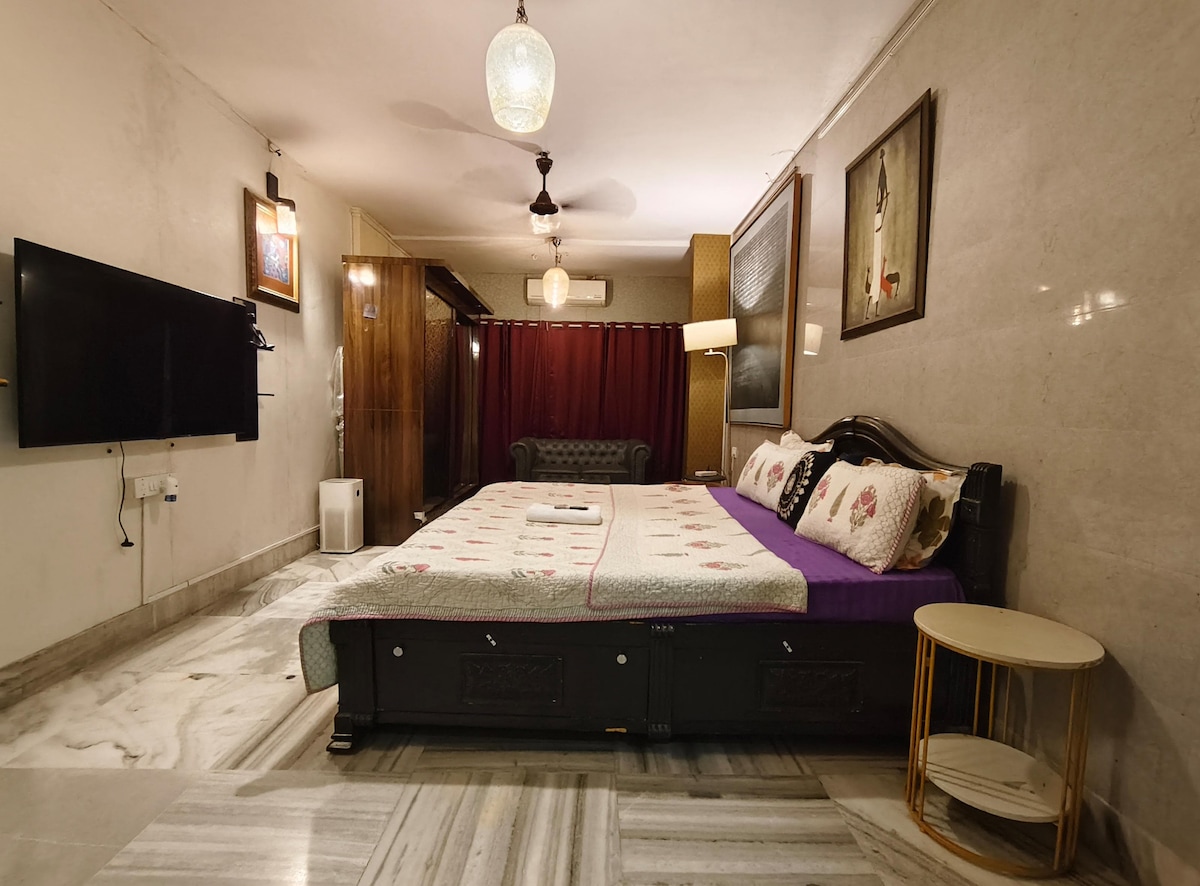 Da la bienvenida a nuestro exclusivo retiro en Airbnb del sur de Bombay, ubicado en un barrio elegante. Sumérgete en el lujo de este encantador bungaló, una joya que captura la esencia de la vida en Bombay. La habitación privada es un remanso de sofisticación, equipada con cocina. Sal a una encantadora zona de estar al aire libre rodeada de un exuberante jardín con una impresionante vista al mar. La ubicación privilegiada ofrece una oportunidad única para disfrutar de la belleza del mar Arábigo desde tu alojamiento.