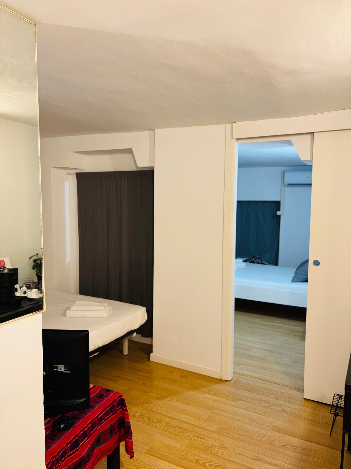 Unidad privada en una casa de huéspedes, Madrid Esta unidad privada de 25 m² puede alojar hasta 4 personas. Cuenta con un espacio que incluye zona de dormitorio, sala de estar y baño privado. Entre los servicios se incluyen Wi-Fi, TV, lavadora, secadora, plancha y secador de pelo. La unidad también dispone de microondas, cafetera, hervidor de agua, vajilla y cubertería. Una opción sencilla y práctica para viajeros que buscan un espacio privado con lo esencial durante su estancia en Madrid.
