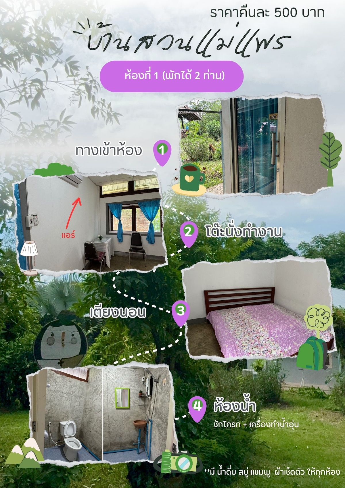 ที่พักมีสไตล์ พื้นที่กว้างขวาง สะอาด สะดวกสบาย พร้อมสิ่งอำนวยความสะดวกครบครัน ฟรี wi-fi สามารถพักได้ 8 ท่าน มีอ่างจากุชชี่ ขนาดใหญ่ สนามหญ้า ภายนอกอาคารมีบริเวณสำหรับสังสรรค์ สถานที่ท่องเที่ยวใกล้เคียง ใกล้เขื่อนแม่งัด วัดเด่นสะหลีศรีเมืองแกน ใกล้ตลาดเมืองแกนเพียง 3 กม. มีเซเว่น โลตัส บิ๊กซี ร้านอาหาร