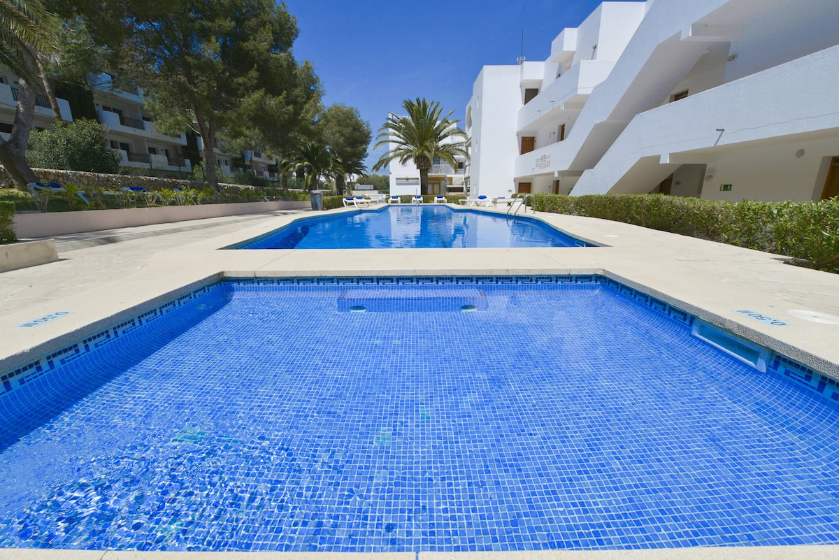 Apartamento de 1 dormitorio en Cala ferrera. A 2 minutos de la playa y 10 del centro de Cala D'Or. 1 Dormitorio con dos camas individuales, 1 baño con ducha y secador Salón con cocina americana: 2 fogones, microondas, tostadora, calentador de agua , nevera , vajilla, cubiertos etc. Con aire acondicionado frío calor, Tv-Sat y Wifi. Acceso a piscina comunitaria y hamacas Parking gratuito en las inmediaciones Wifi gratis Para de Bus a 1 minuto Supermercados y restaurantes en los alrededores