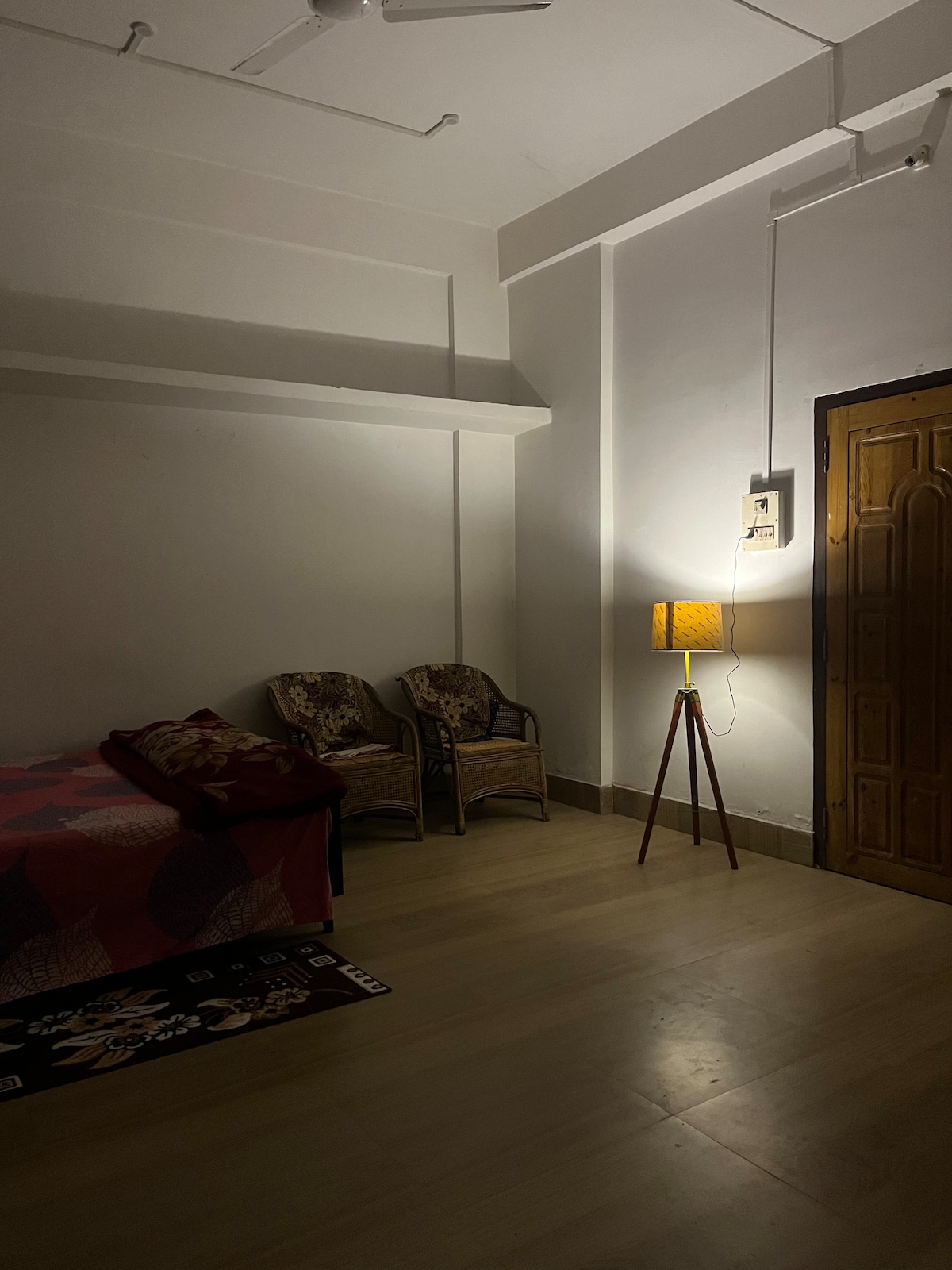 • Your Stay comes with a Complimentary Breakfast • You get the entire 2BHK flat with 2 bedrooms (attached washrooms), kitchen, living room & balcony • You relax in a theatre-style space with a 55" TV • You stay in a prime Jorhat location near Gar Ali Market, cafés & street food • You reach the airport, bus stand & railway station easily • You use the kitchen, rooftop terrace & washing machine freely • You stay in a secure area with a 24/7 caretaker • You enjoy fast Wi-Fi throughout
