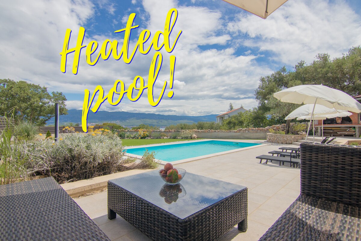 Villa de estilo mediterráneo en la isla de Krk con piscina climatizada y vistas al mar. Cuenta con 4 amplios dormitorios, cada uno con baño privado. Ubicada en un tranquilo pueblo costero, ofrece vistas panorámicas al Adriático, una gran terraza, zona de estar, piscina, tumbonas y sombrillas para tomar el sol. También cuenta con una cocina de verano totalmente equipada. El interior combina el encanto mediterráneo con la sofisticación moderna, incluyendo una cocina totalmente equipada. Disfruta de todas las comodidades de esta impresionante villa.